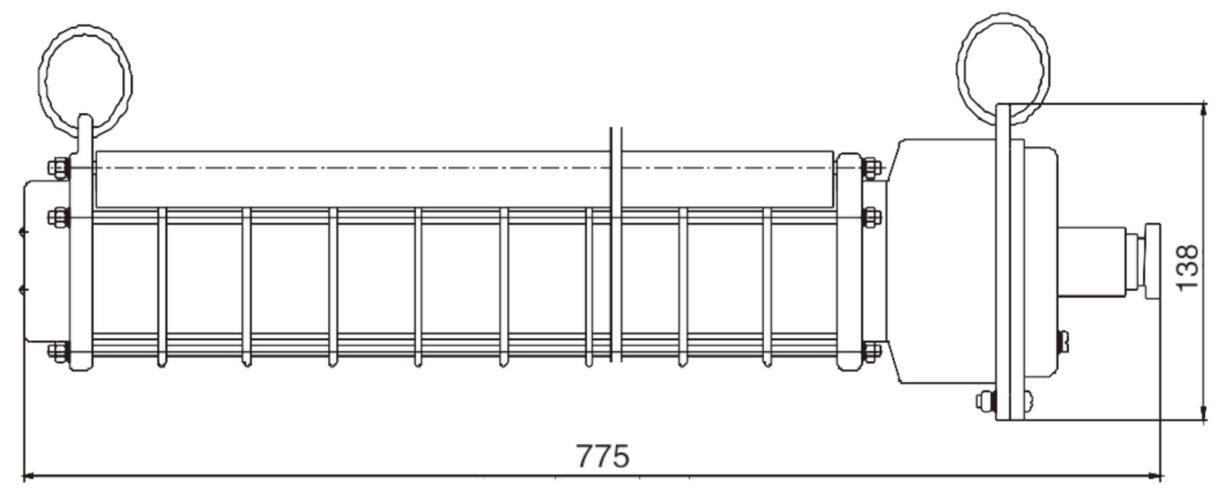 LED燈由左、右蓋及電源、光源、防爆玻璃罩、金屬防護(hù)罩等部分組成。左蓋上設(shè)有銘牌。殼體內(nèi)裝有恒壓恒流源、接線座,右蓋設(shè)有電纜引入裝置和外接地螺釘。防爆玻璃罩與左蓋、右殼體間由密封墊密封;光源連同散熱器裝在防爆波里罩內(nèi)。光源腔與接線腔,燈具內(nèi)腔與外界均有符合規(guī)定的防爆接合面防爆。